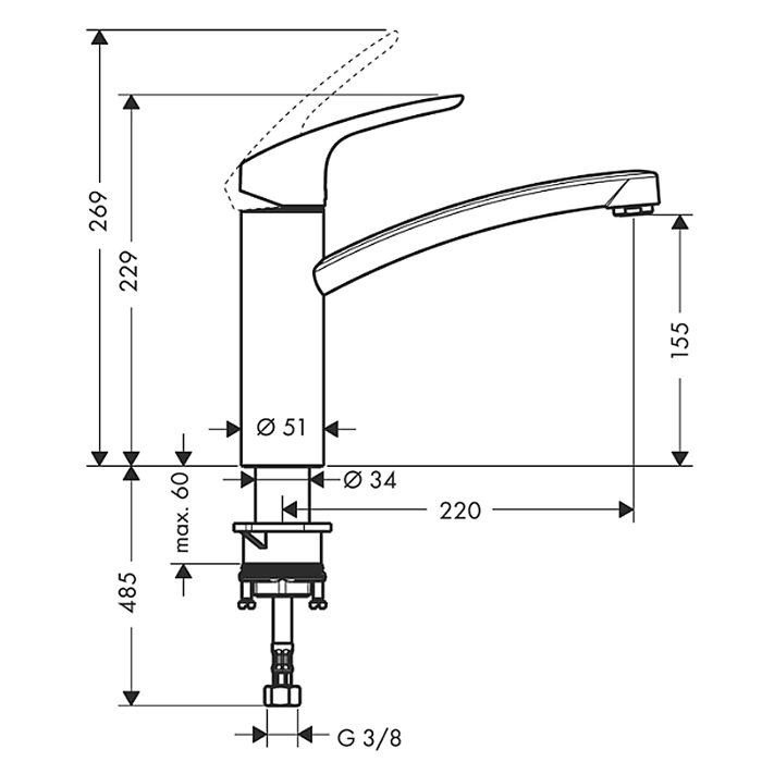 Это универсальный смеситель, который идеально подходит для большинства стандартных кухонь. Благодаря поворотному изливу он особенно удобен для просторных или двухчашевых моек. Модель с хромированным покрытием (31806000) легко впишется в любой стиль - от классики до модерна. Он совместим со столешницами и мойками толщиной до 40 мм.