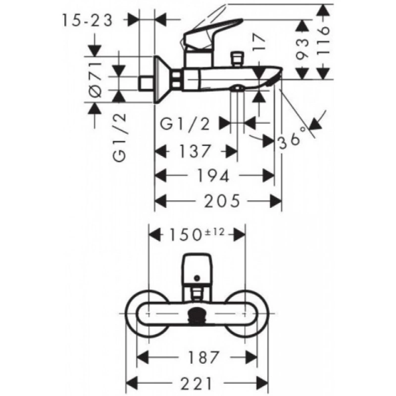 Смеситель для ванны Hansgrohe Logis настенный с переключателем на душ (71400000)