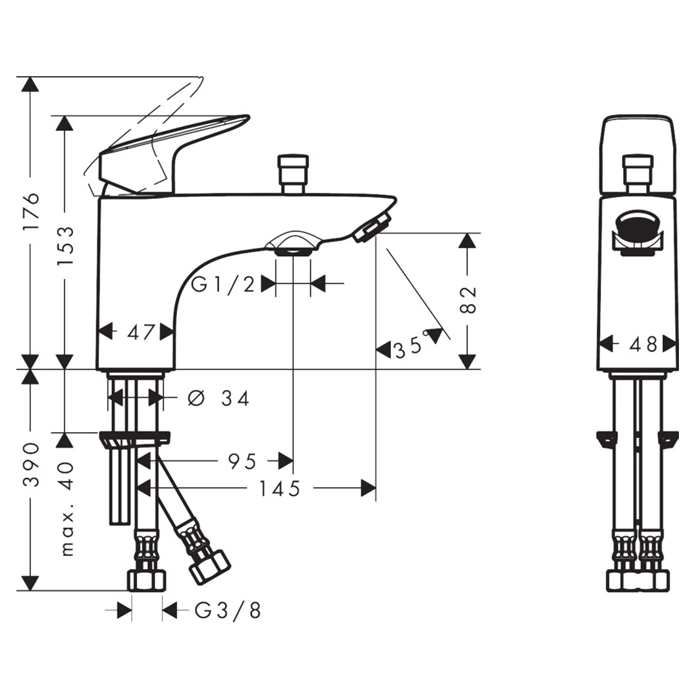 Смеситель Hansgrohe Logis с вакуумным переключателем универсален. Он идеально подходит для стандартных прямоугольных и угловых акриловых, стальных и чугунных ванн. Монтажное отверстие под смеситель должно находиться на бортике ванны или на стене непосредственно над ней. Убедитесь, что расстояние между отверстиями подводки соответствует параметрам смесителя.