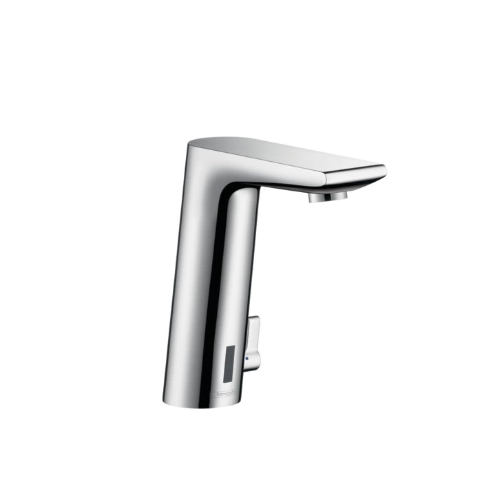 Электронный смеситель Hansgrohe Metris S оснащен бесконтактным инфракрасным датчиком, который автоматически включает и выключает воду. Он имеет фиксированную настройку комфортной температуры, а также кнопку для временного переключения на холодную воду. Это обеспечивает гигиеничность и экономию воды.