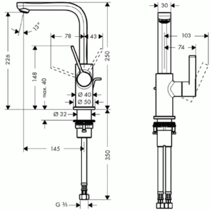 Hansgrohe Metris S - это настольный смеситель для раковины. Он монтируется в стандартное отверстие на раковине или столешнице. Диаметр монтажного отверстия обычно составляет 35 мм (1 3/8 дюйма), но рекомендуется свериться с технической спецификацией конкретной раковины.
