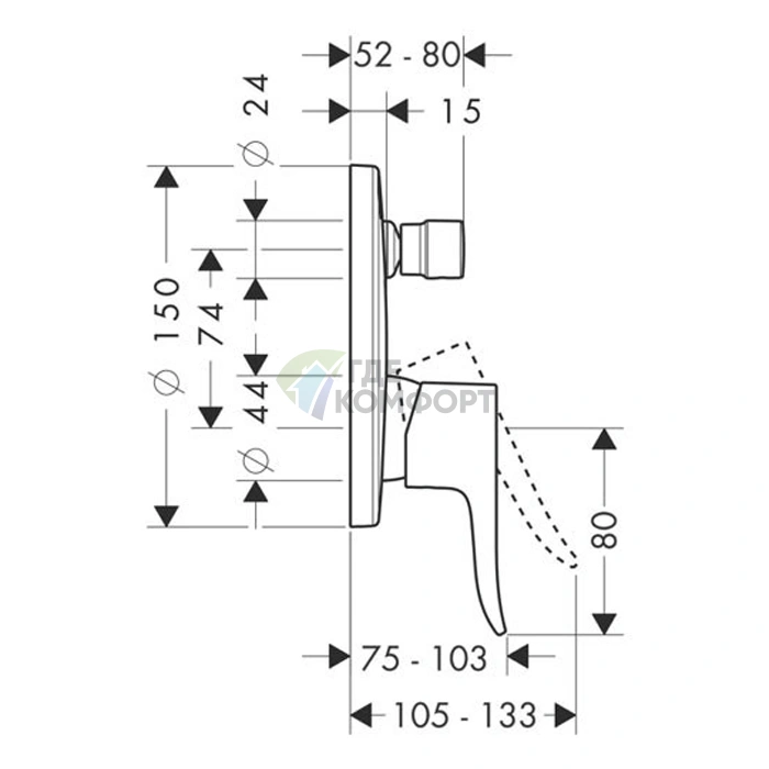Вопросы и ответы о смесителе для ванны Hansgrohe Metris со встраиваемым вакуумным переключателем (31484000)