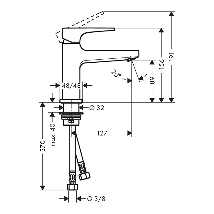 Данная модель (32500340) предназначена для монтажа на раковину или столешницу с одним монтажным отверстием. Смеситель имеет излив длиной 127 мм и подходит для большинства стандартных раковин.