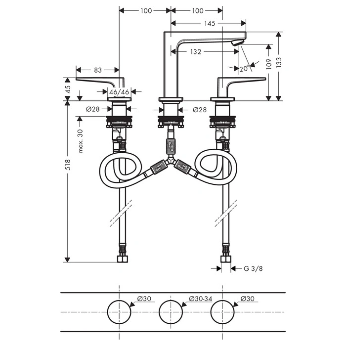Смеситель Hansgrohe Metropol 110 предназначен для монтажа на раковину или столешницу с тремя монтажными отверстиями. Он идеально подходит для многих моделей моек и умывальников, особенно где предусмотрено раздельное крепление для излива, рукояток горячей и холодной воды.