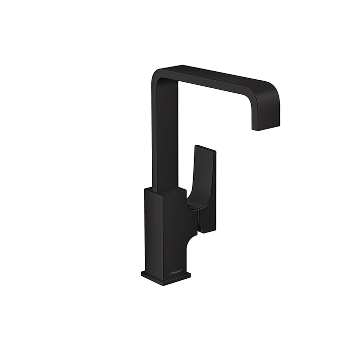 Смеситель Hansgrohe Metropol 230 изготовлен из высококачественной латуни с прочным матовым черным покрытием. Это покрытие устойчиво к появлению царапин и известкового налета, что обеспечивает долговечный эстетичный вид.