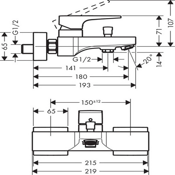 Он предназначен для установки на стену или на монтажную панель инсталляции для ванны. Расстояние между подводками (межосевое расстояние) стандартное - 150 мм. Перед покупкой убедитесь, что в вашей ванной комнате возможен такой тип установки и подготовлены соответствующие выводы.