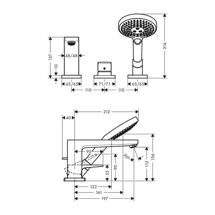 Вопросы и ответы о смесителе для ванны Hansgrohe Metropol с ручным душем 3jet, хром (74550000)