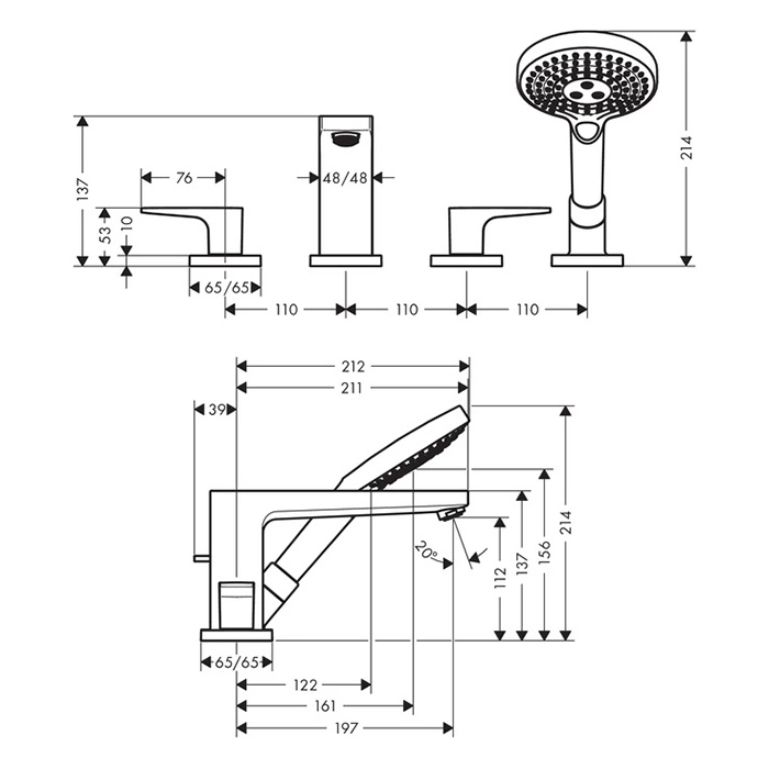 Вопросы и ответы о смесителе Hansgrohe Metropol для ванны с ручным душем 3jet, хром (74552000)