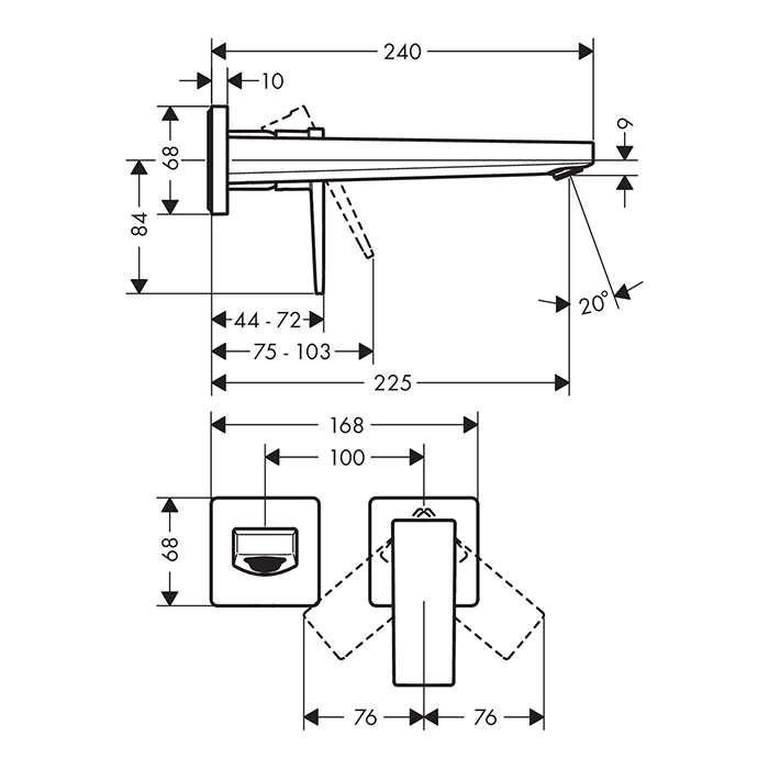 - Длина излива: 225 мм.