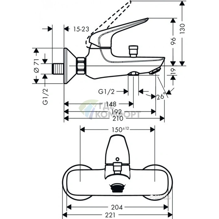 Вопросы и ответы о смесителе для ванны Hansgrohe Novus настенный, хром (излив 192 мм)