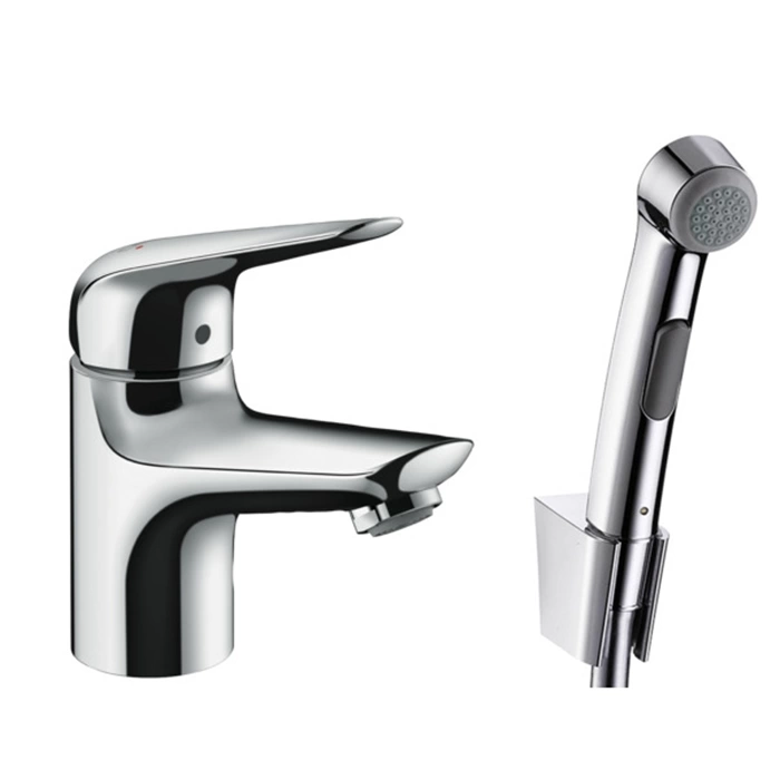 Набор для биде Hansgrohe Novus: смеситель для раковины и душ бидетте с держателем, хром (71144000)