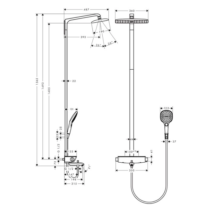 Душевая система HG Raindance E с термостатом, верхним душем 360° и полочкой для ванны (27113000)