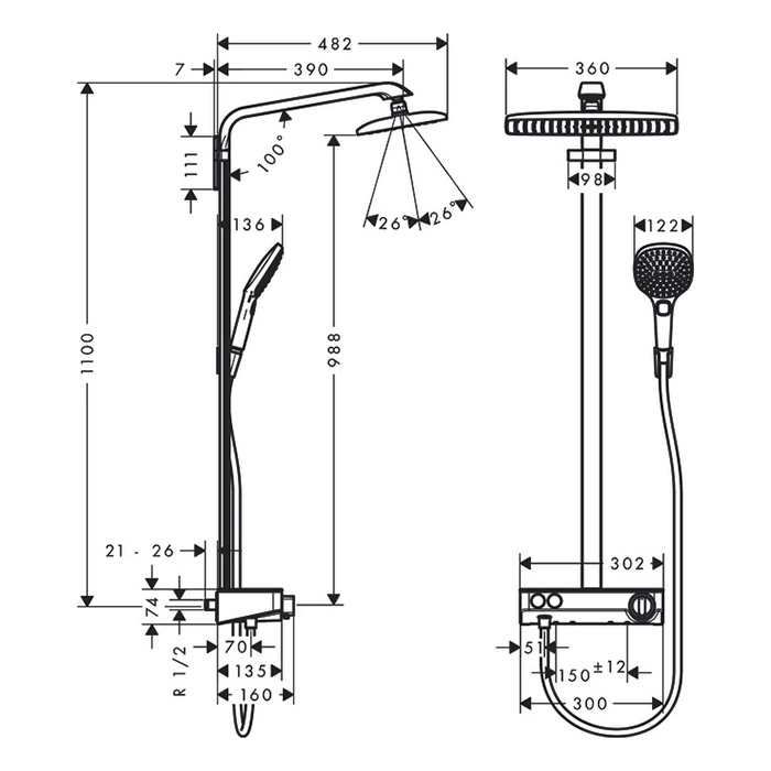 Душевая система HG Raindance E с термостатом и верхним душем 360 мм (27288400)