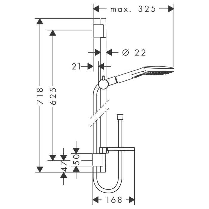 Душевой набор HG Raindance Select E с функцией EcoSmart: ручной душ 120 мм, 3 режима (RainAir, WhirlAir, Rain), штанга 650 мм, хром (26622000)