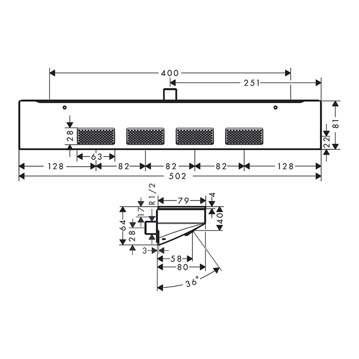 Душ боковой и верхний HG Rainfinity 502х81 мм с полкой, хром (26243000)