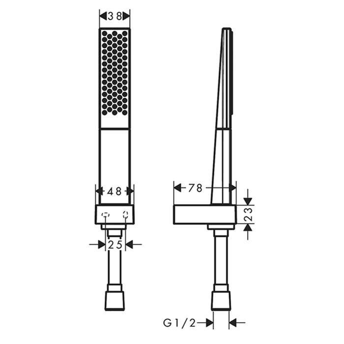 Диаметр посадочного места рассчитан на типовые размеры. Однако для идеальной эстетики и гарантированно надежной фиксации мы рекомендуем использовать родную лейку из комплекта HG Rainfinity. Если вы планируете использовать другую лейку, проверьте диаметр её корпуса в месте крепления.