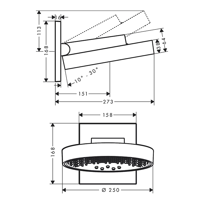 Диаметр панели. 250 мм - оптимальный размер для полноценного покрытия водой плечевого пояса взрослого человека. Меньшие диаметры могут создавать ощущение «локального» душа, а большие требуют более мощного котла или водонагревателя.