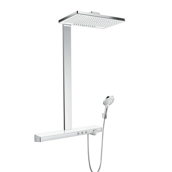 Душевая система HG Rainmaker Select с термостатом и полочкой: верхний душ, ручной душ, хром/белый (27109400)