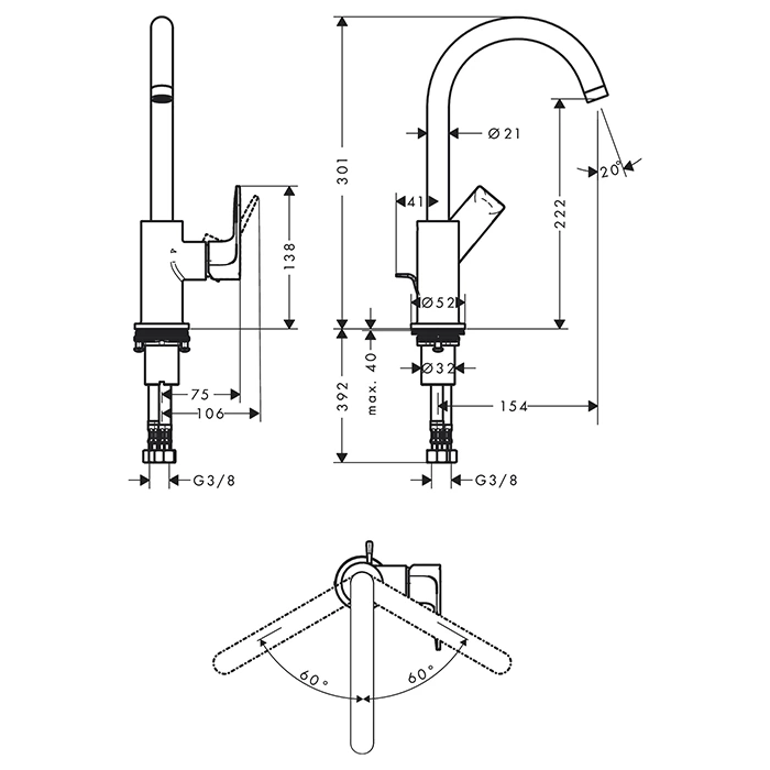 - Поворотный излив на 360°: Обеспечивает максимальный комфорт при использовании, воду можно направить точно в нужную точку раковины.