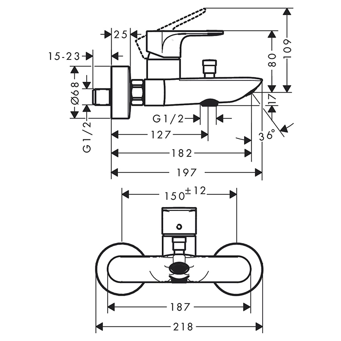 Смеситель для ванны Hansgrohe Rebris E, настенный монтаж, хром (72450000)