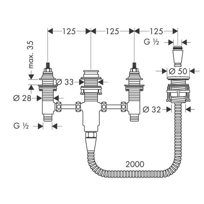 Скрытый смеситель Hansgrohe для ванны на 4 отверстия (13244180)
