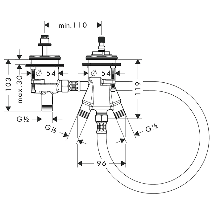 Термостатический модуль Hansgrohe для скрытого монтажа в борт ванны на 2 отверстия (13550180)