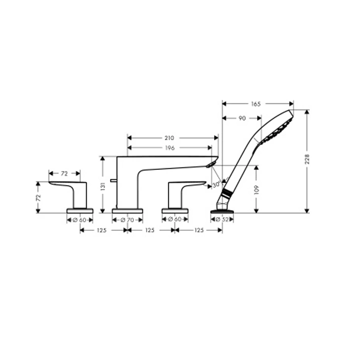 Смеситель для ванны Hansgrohe Talis E с ручным душем, хром (71748000)
