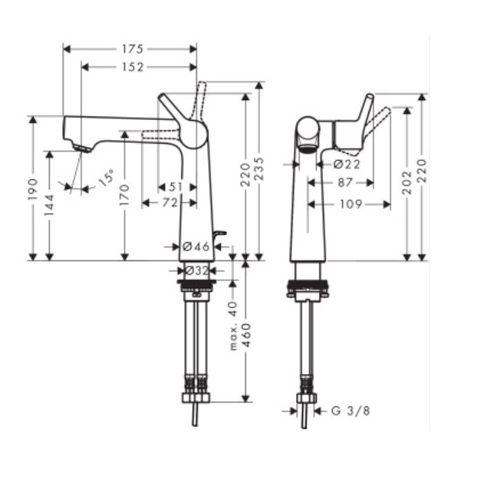 Смеситель Hansgrohe Talis S с высотой излива 113 мм идеально подходит для большинства моек и раковин в ванной комнате. Перед покупкой рекомендуем измерить диаметр установочного отверстия. Универсальное подключение и компактные эксцентрики позволяют легко установить его как на толстую столешницу, так и на тонкую стенку раковины.