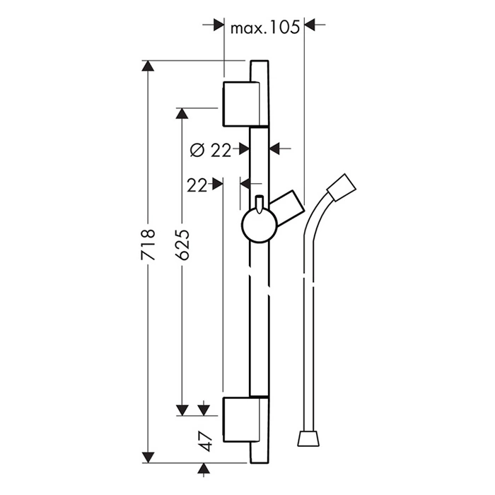 Штанга HG UnicaS Puro (артикул 28632000) спроектирована с учетом повседневного использования. Ее конструкция выдерживает вес лейки и шланга, обеспечивая стабильность. Усиленные пружины внутри механизма гарантируют плотное прилегание к стенам без люфтов. Модель совместима с большинством современных душевых леек, что делает ее отличным вариантом для замены старого или ненадежного держателя.
