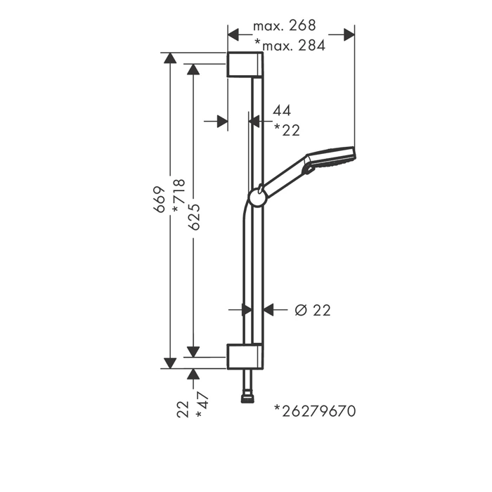Душевой набор HG Vernis Blend Vario 650 мм с ручным душем, штангой и ползунком EcoSmart хром (26279000)