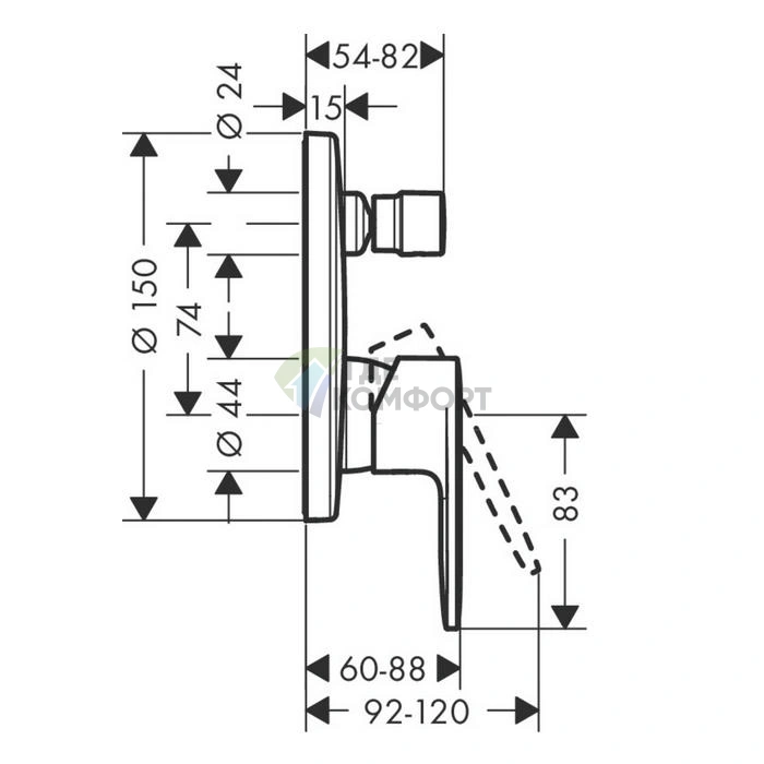 Вопросы и ответы о смесителе для ванны Hansgrohe Vernis Blend встраиваемом с переключателем, матовом черном (71466670)
