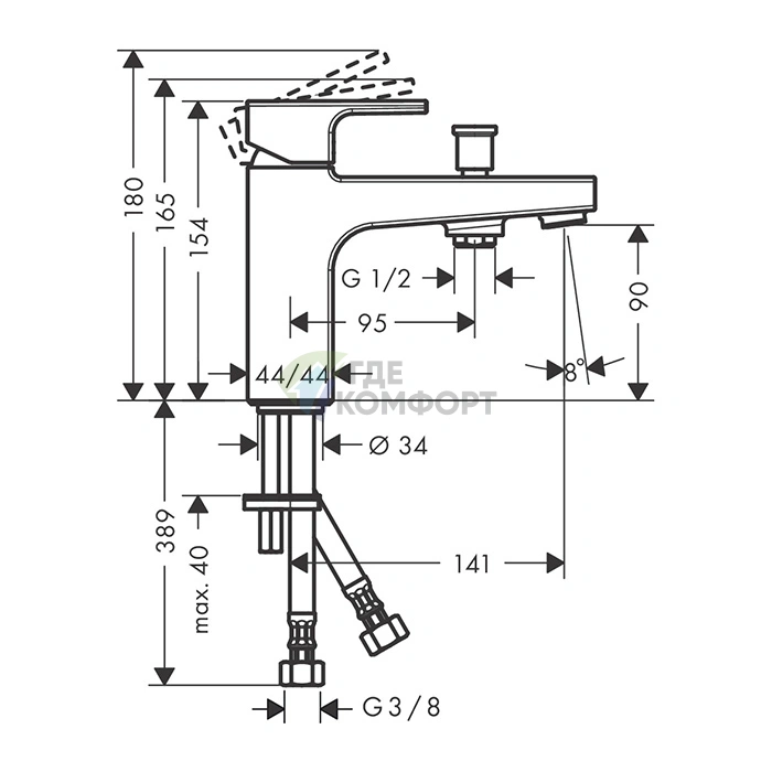 Модель рассчитана на монтаж на плоскость толщиной до 40 мм. Если вы планируете установку на нестандартную поверхность или у вас ванна с вертикальным бортиком, рекомендуем проконсультироваться с нашим менеджером перед покупкой. Он поможет подобрать правильные дополнительные элементы или переходники.