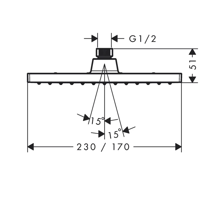 HG Vernis Shape 230 - это классический верхний потолочный душ для статичного верхнего душирования. Его ключевая функция - обеспечивать мощный, равномерный и комфортный поток воды («водопад») строго вертикально сверху. Это идеальное решение для расслабления и создания атмосферы спа-зоны в вашей ванной комнате.