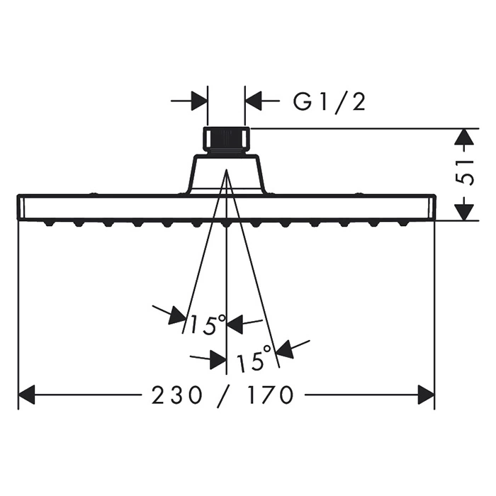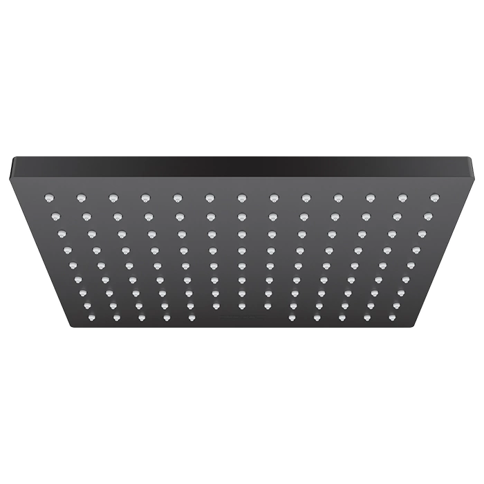 Изделие выполнено из прочного латуни с матовым черным покрытием. Такая отделка не только выглядит современно, но и практична: на поверхности почти не видны следы от капель воды и известковый налет. Размеры 230x170 мм делают душ оптимальным для большинства стандартных душевых кабин и перегородок.