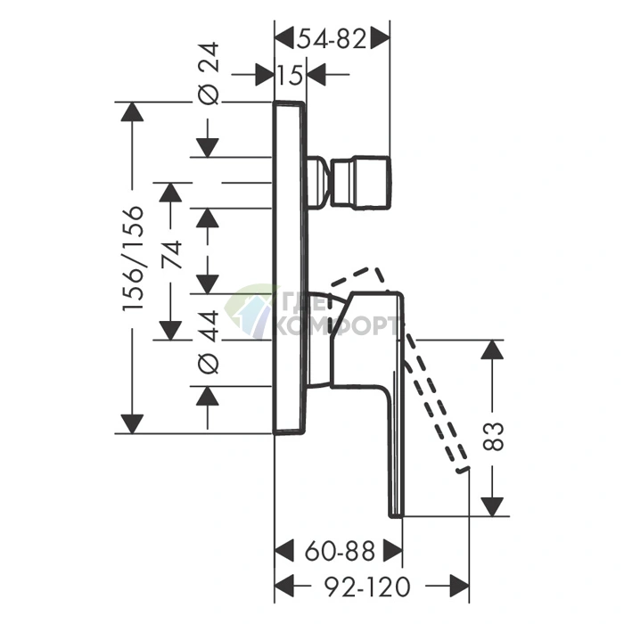 - Универсальность установки: смеситель совместим со многими системами скрытого монтажа.