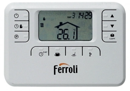 Данный хронотермостат совместим с большинством газовых котлов Ferroli, имеющих соответствующий разъем для подключения беспроводного приемника. Он также может работать с другими марками котлов, если к ним можно подключить совместимый беспроводной приемный модуль (приобретается отдельно). Рекомендуем уточнить совместимость с вашей конкретной моделью котла.