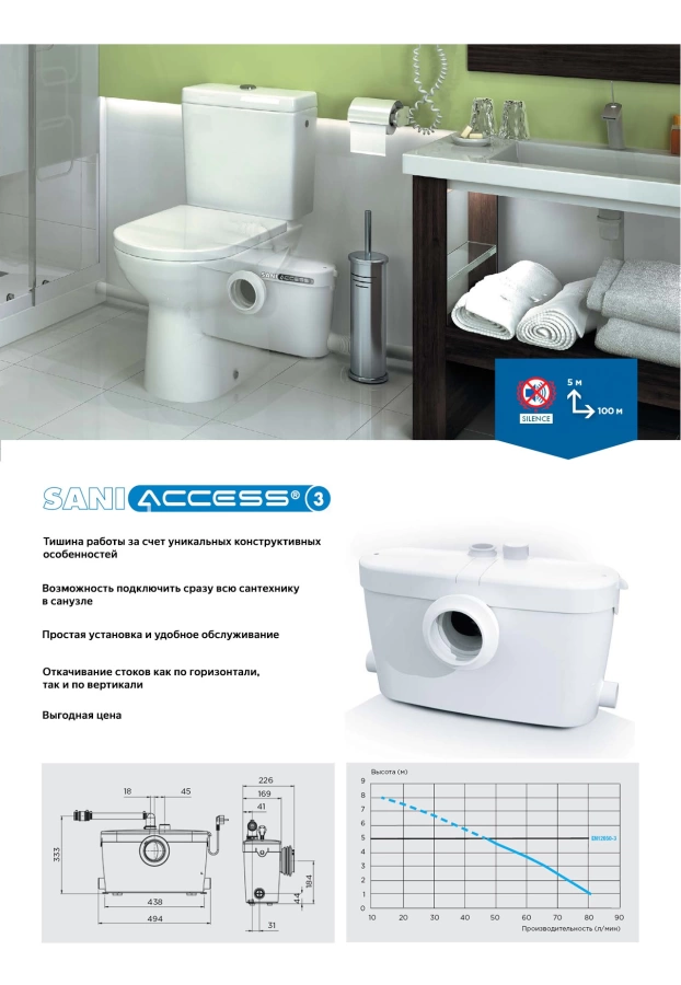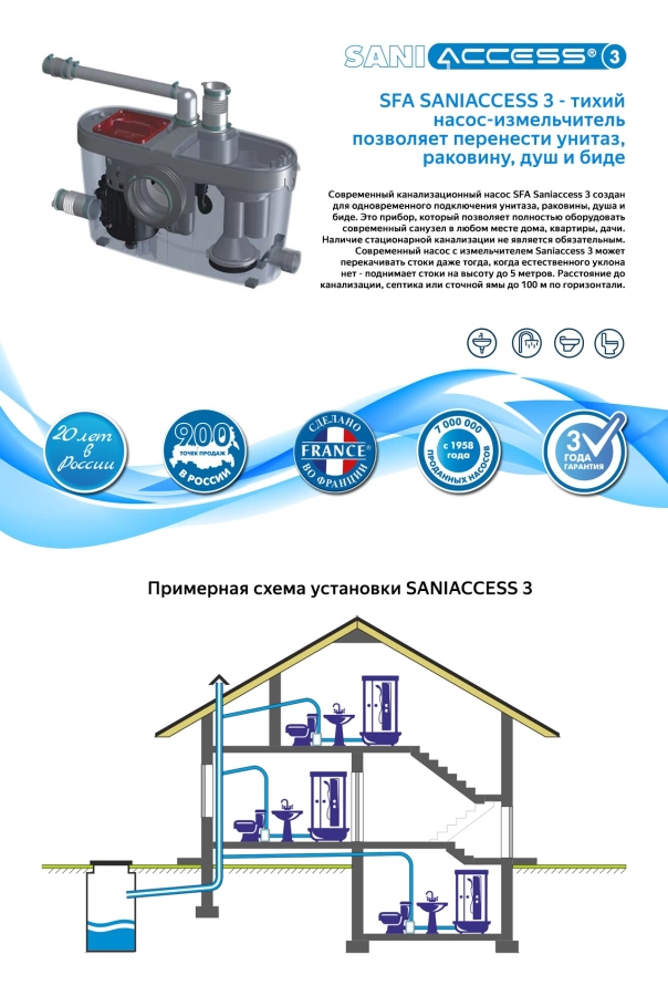 Насосная станция Saniaccess 3 — это проверенное европейское качество, долговечность и полная автономность в работе, делающая комфортной жизнь в любом уголке вашего дома.