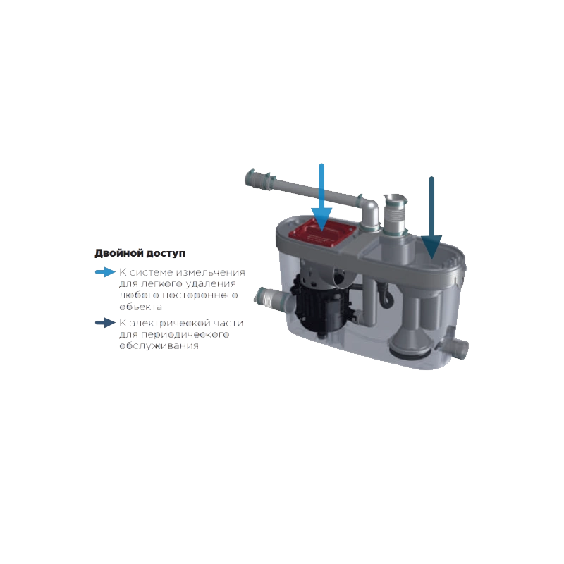 Встроенный измельчитель - одна из главных отличительных черт модели. Нож из закаленной стали надежно перемалывает волокнистые включения и твердые частицы, предотвращая засоры в трубопроводе. Корпус выполнен из прочного пластика, устойчивого к агрессивным средам.