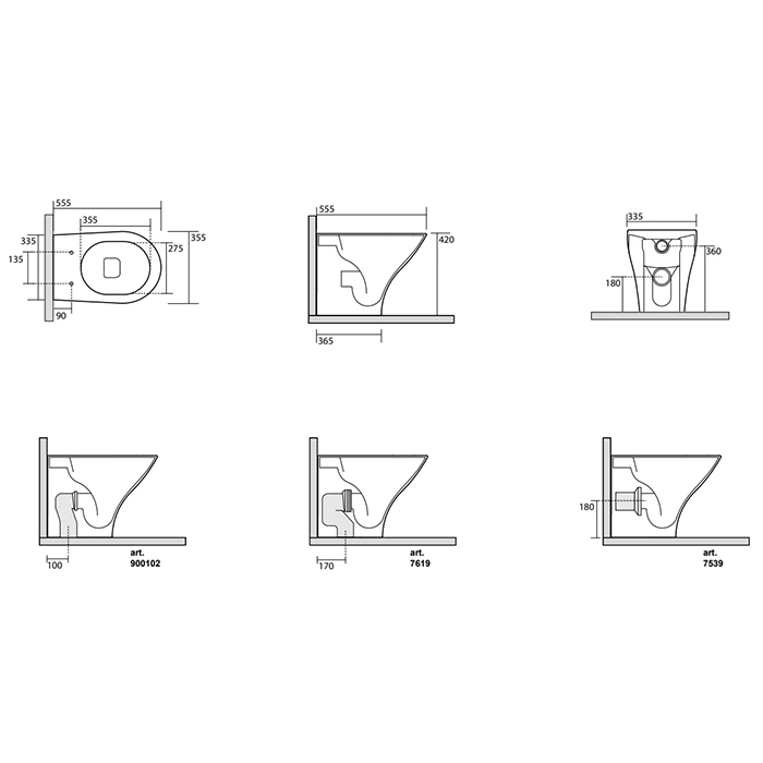 В комплект входит чаша унитаза, крышка-сиденье с микролифтом и крепежный комплект. Система инсталляции или напольный крепеж, а также сливной бачок и арматура для него приобретаются отдельно.