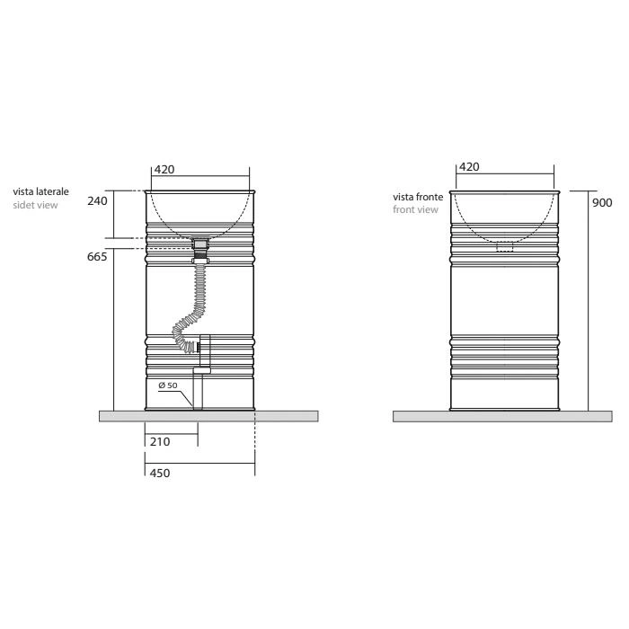Свободностоящая раковина Kerasan Artwork BARREL ∅45×90 см без отверстия под смеситель со сливом в пол и сифоном в цвете Bianco-platino (4742K44)