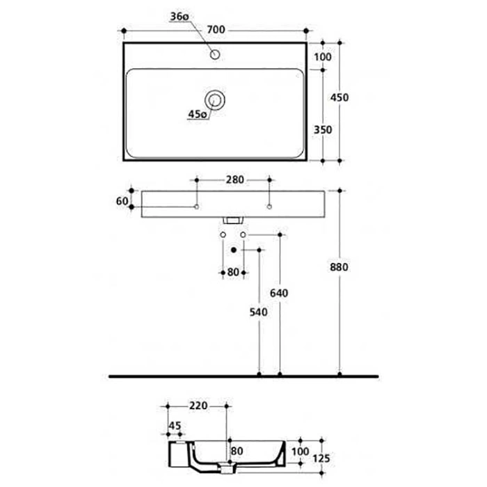 - Для прагматичных хозяев небольших санузлов. Размер 70x45 см - золотая середина. Она экономит пространство, но при этом остается достаточно вместительной и комфортной для использования.