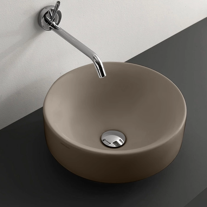 - Владельцам компактных санузлов. Идеальный круг диаметром 45 см экономит пространство на столешнице, не жертвуя полезной площадью чаши. Это раковина без отверстия под смеситель, что дает полную свободу в его размещении.