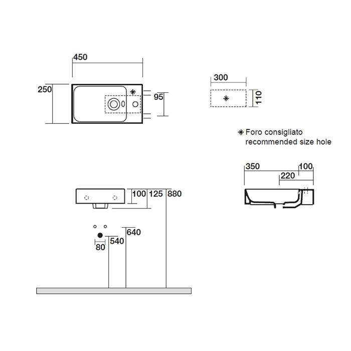 При выборе подвесной раковины обратите внимание на три вещи. Первое - точные габариты и форма. Перед покупкой как выбрать подвесную раковину, обязательно измерьте отведенное под нее место. Наша модель 450x250 мм - компактный вариант для небольшой ванной или гостевого санузла. Второе - качество материала. Санфаянс или сантехническая керамика должны быть высокой плотности, без пор, чтобы предотвратить впитывание влаги и запахов. KERASAN Cento изготовлена из высококачественного санфаянса с белоснежной глазурью. Третье - готовность к монтажу. Наличие стандартного отверстия под смеситель, как в этой модели, значительно упрощает установку и дает свободу в выборе смесителя.
