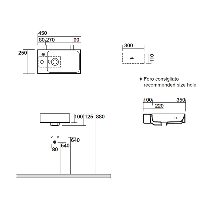 Подвесная раковина KERASAN Cento 45x25 см, белая, с отверстием под смеситель слева (353701L*1)