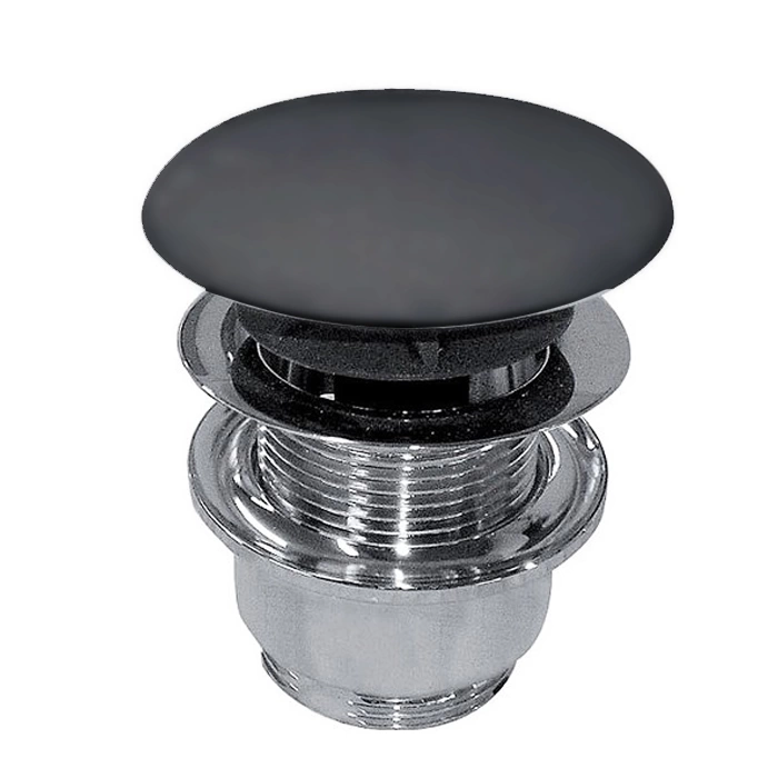 В комплекте вы найдете все необходимое для монтажа: сам донный клапан (механизм), декоративную накладку (кольцо) из керамики черного матового цвета, уплотнительные прокладки и крепежную гайку. Для подключения к канализации вам понадобится отдельный сифон, который можно подобрать в нашем магазине.