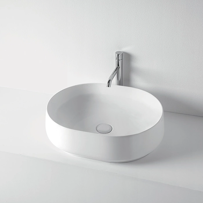 Убедитесь в идеальной геометрии чаши и тактильной приятности покрытия. Эта накладная раковина станет основой аккуратной и функциональной зоны умывания на долгие годы.