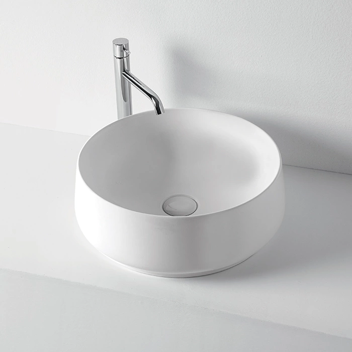 Чаша умывальника изготовлена из высококачественного санфаянса, который отличается повышенной прочностью и устойчивостью к образованию царапин. Матовая поверхность не только выглядит современно, но и помогает скрывать мелкие следы от капель воды и разводы. Раковина предназначена для верхнего монтажа на подготовленную тумбу или столешницу, что упрощает процесс установки и интеграции в готовый мебельный гарнитур.