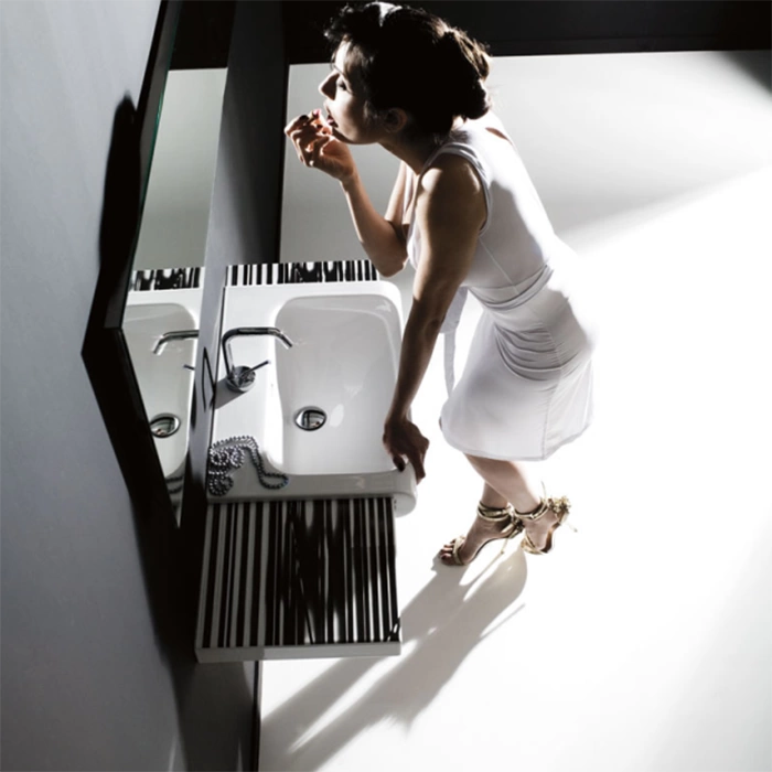 Такое решение становится все популярнее. Оно не только выглядит стильно, но и дает практические преимущества. Вы не привязаны к стандартному расположению смесителя и можете выбрать дизайнерскую модель с длинным изливом или термостатом. Раковина KERASAN Inka Project выступает как самостоятельный элемент дизайна, который легко комбинируется с мебелью разных цветов.