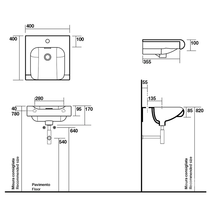 Изделие изготовлено из высококачественного санфаянса, известного своей прочностью, гигиеничностью и стабильностью цвета. Компактные размеры 40 на 40 см и универсальная глубина делают эту модель идеальным решением для помещений с ограниченным пространством, где важен каждый сантиметр.