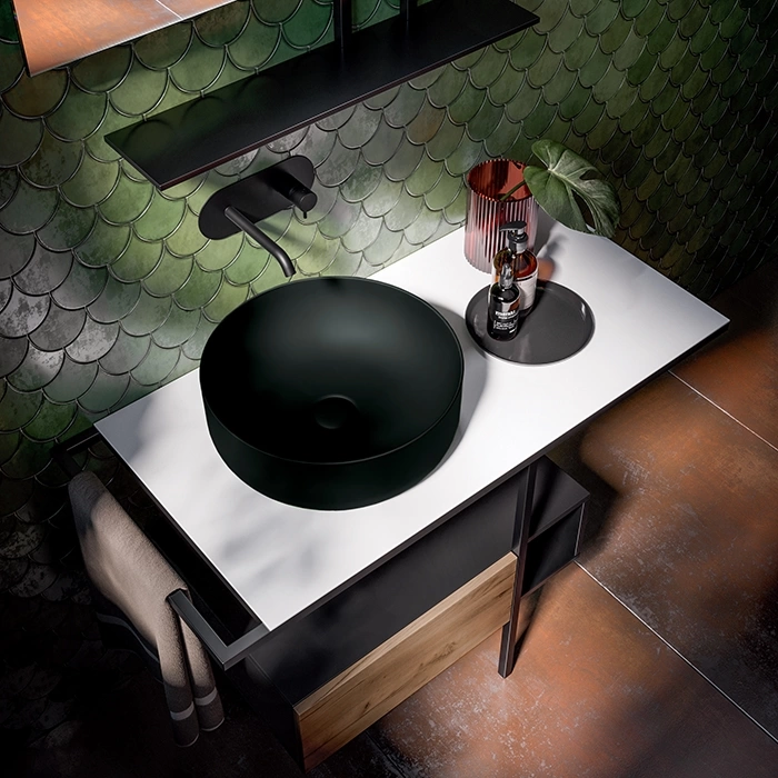 Стильная раковина-чаша Kerasan Nolita станет акцентным элементом современной ванной комнаты или дизайнерского санузла. Ее глубокая чаша диаметром 40 см и насыщенный матово-черный цвет создают выразительный контраст с любыми отделочными материалами. Отсутствие отверстия под смеситель открывает свободу для творческой установки и выбора эксклюзивной арматуры.